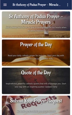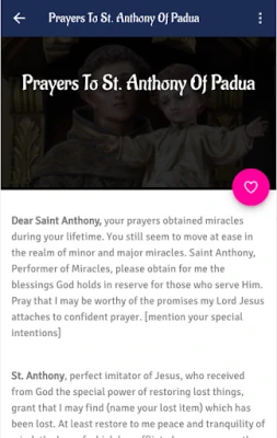 On this application you will find a collection of classic prayers addressed to Saint Anthony. These prayers are a very helpful aid handed down to us by the tradition so that we may encounter the presence of our beloved Saint Anthony in our daily life, and in particular invoke his aid in helping us re-establish a friendly relationship with God.