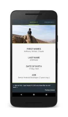 This application shows you my whole Curriculum Vitae within an original format, and with a lot of information about me.
