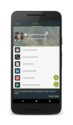 You will find in this app the details regarding my trainings, experiences, skills, projects made, and a lot of other. You will also be able to contact me using different ways.