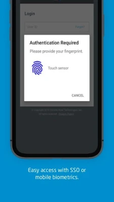• Easily log in using single sign-on authentication (SSO) or enable mobile biometrics like touch and face identification for simplified access