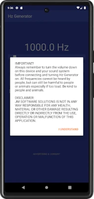 Always remember to turn the volume down on your sound system before connecting and turning this app on. All frequencies are not playable on all devices/audio systems. All frequencies cannot be heard, but can be harmful if too loud. Be kind to animals and people.